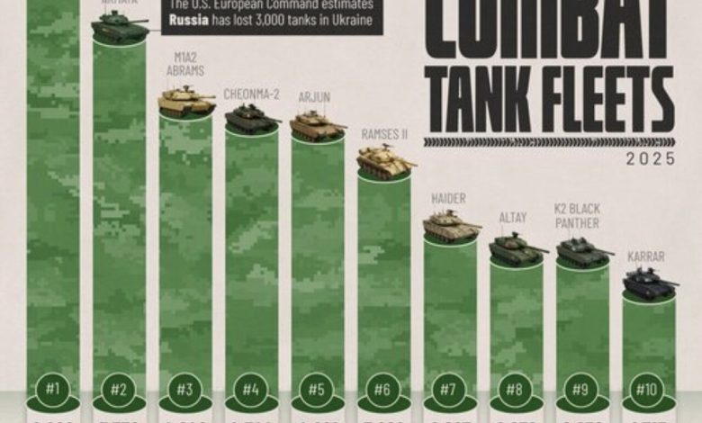 کشورهایی که بیشترین تانک رزمی را دارند / ایران در بین ده کشور برتر +اینفوگرافیک